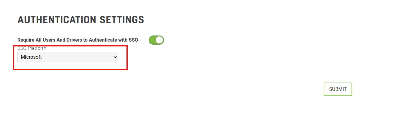 Toggle ‘Require All Users and Drivers to Authenticate with SSO’