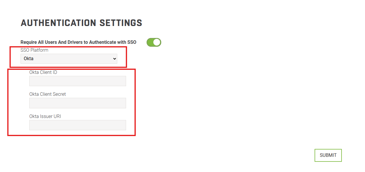Toggle ‘Require All Users and Drivers to Authenticate with SSO’