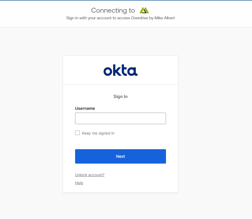 Log in with Okta. If your credentials are valid, you will be redirected to the Overdrive dashboard